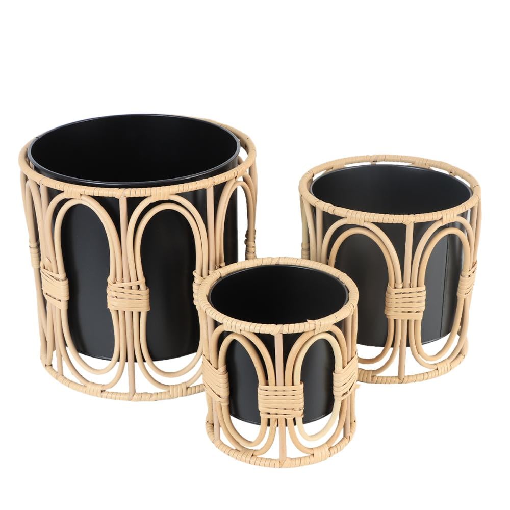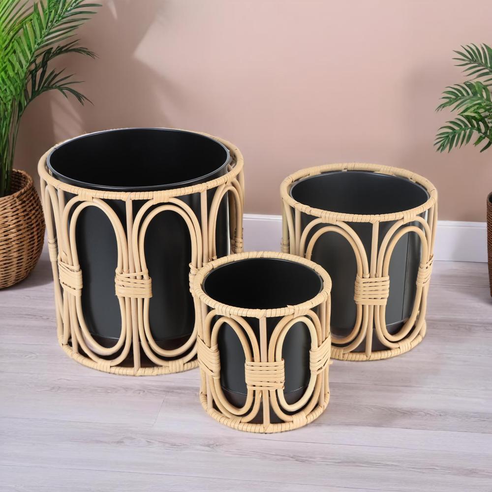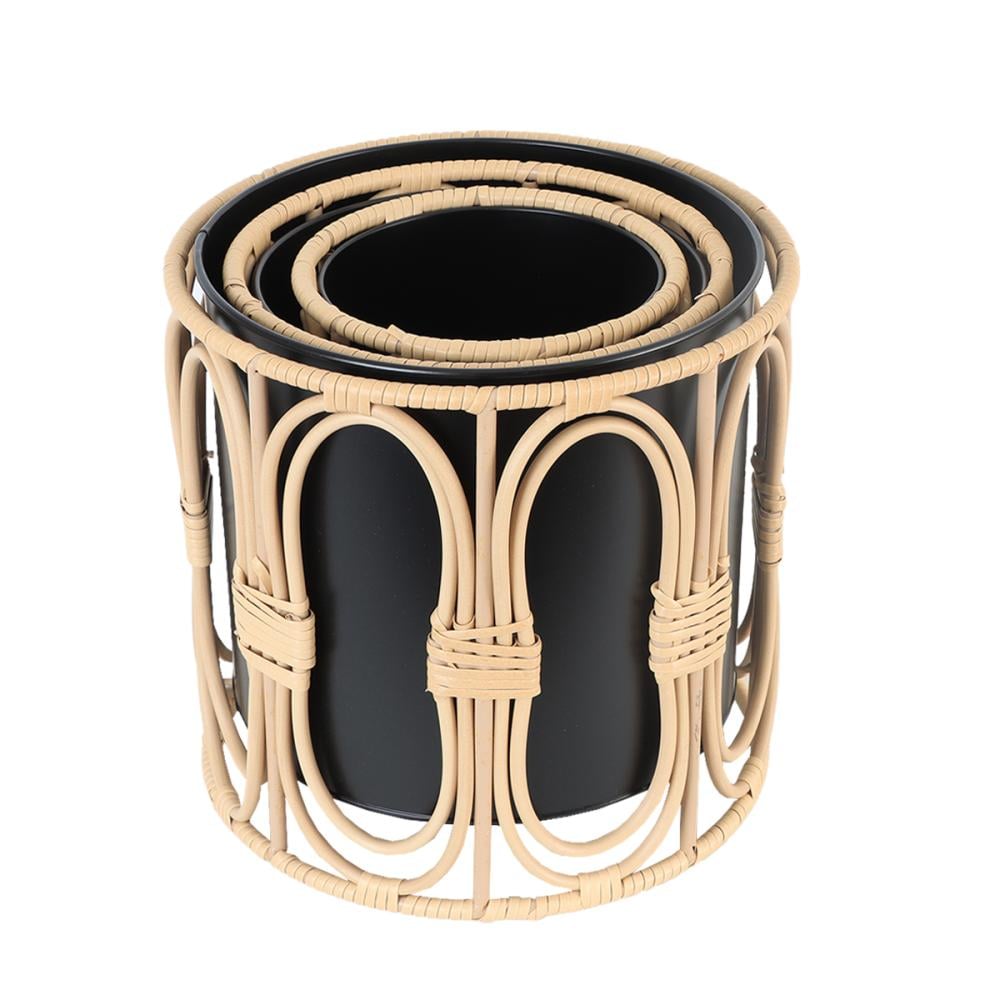 مراكن خيزران دائرية بقاعدة معدن 3 قطع