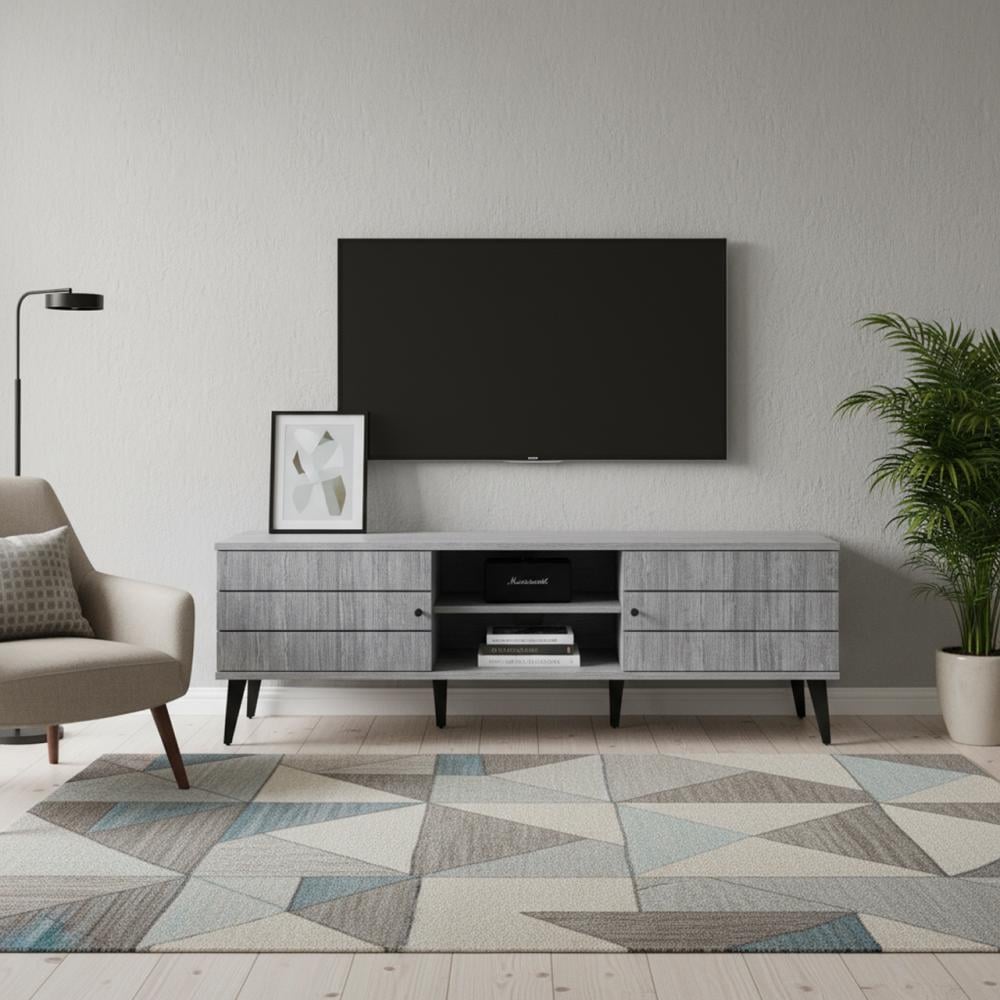 - تخزين متعدد الاستخدامات: درجين ورفوف مفتوحة لترتيب الأجهزة والديكورات بطريقة منظمة.
