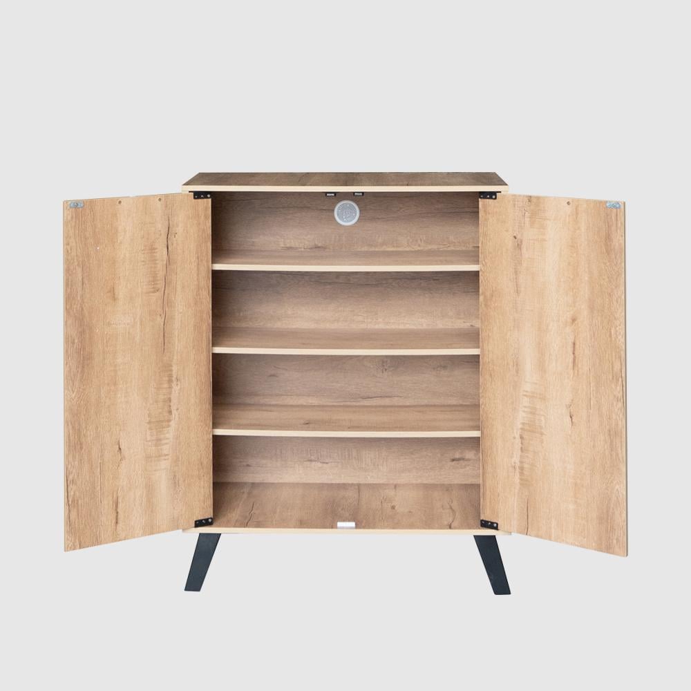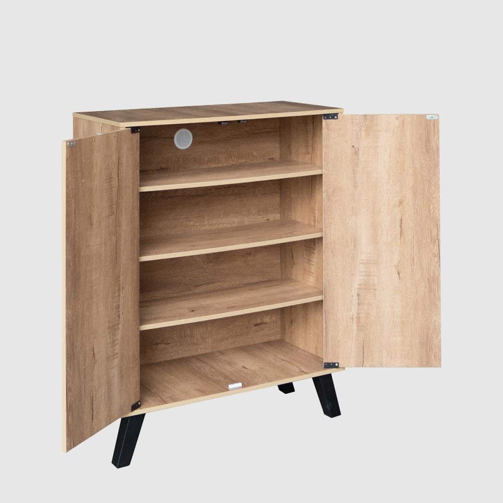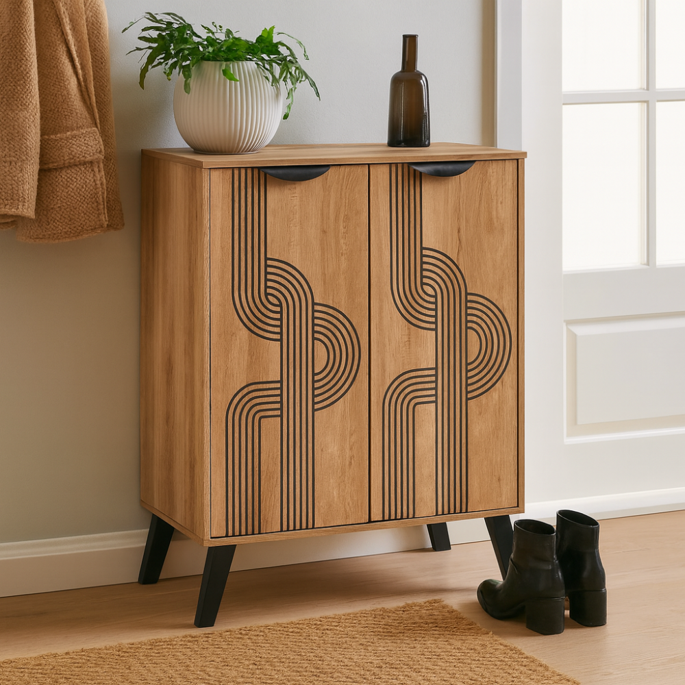 خزانة عملية بمظهر خشبي أنيق لتنظيم الأحذية في المداخل