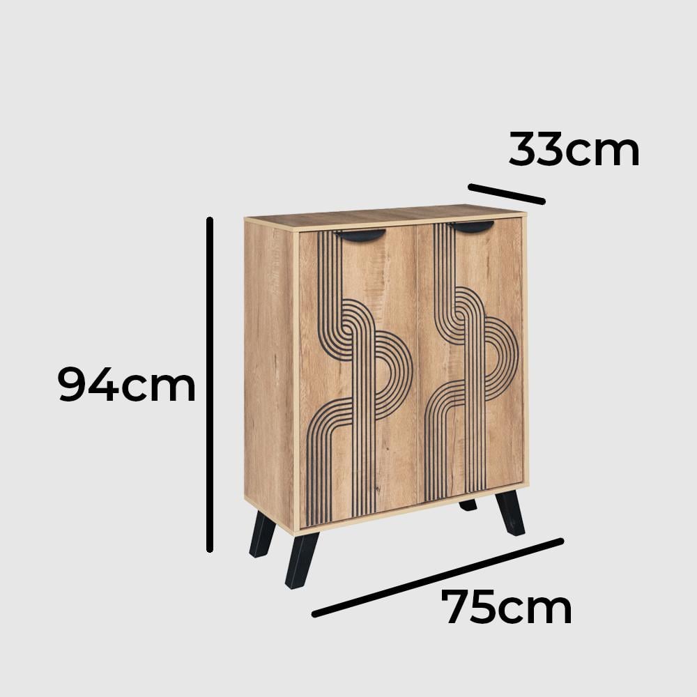 توفر هذه الخزانة تصميمًا عمليًا يجمع بين الأناقة والتنظيم، مما يجعلها خيارًا مثاليًا للمداخل والممرات. تتميز بمظهر خشبي راقٍ يضفي لمسة دفء وانسجام على المكان، كما أنها مصنوعة من خامات ماليزية عالية الجودة لضمان المتانة وطول العمر.