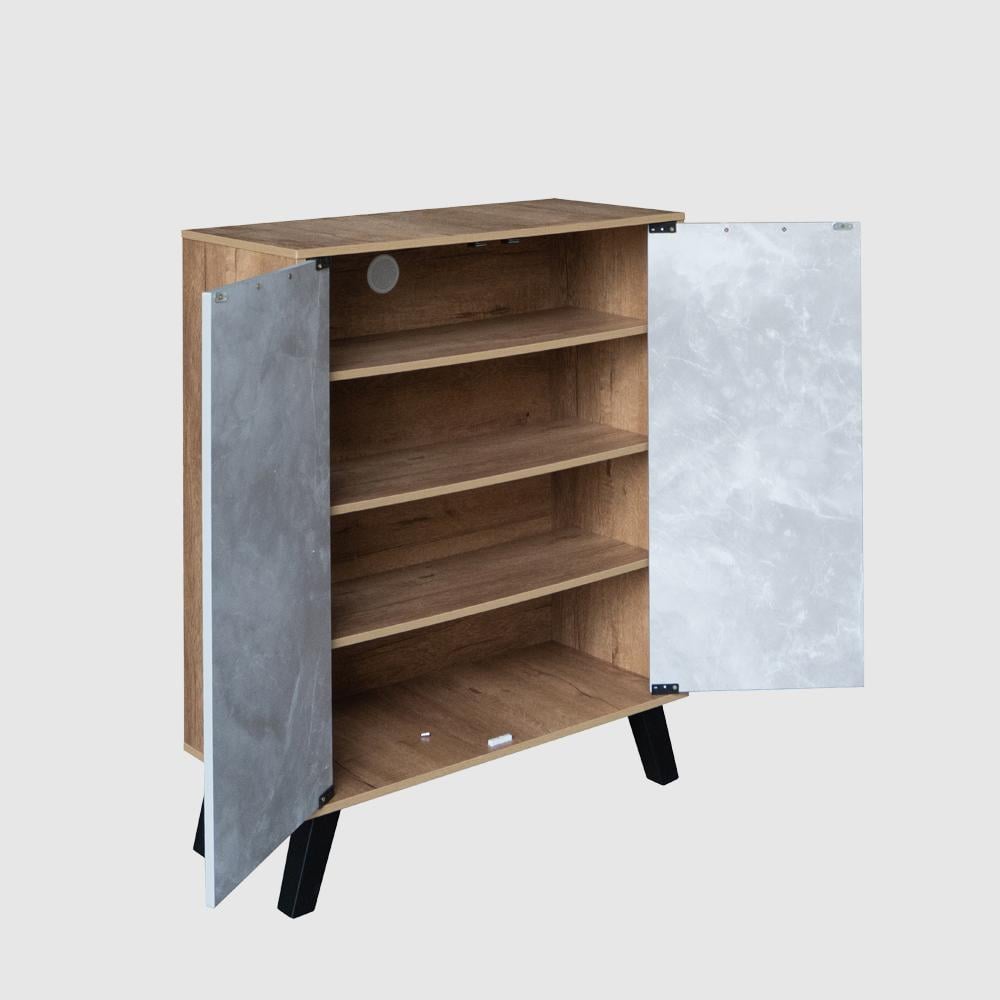 أضف لمسة من الأناقة والتنظيم إلى منزلك مع خزانة أحذية ببابين مصنوعة من خشب ماليزي متين. تحتوي على 4 مستويات تخزين تتيح لك ترتيب الأحذية بسهولة، بتصميم أنيق يجمع بين العملية والتصميم الجذاب, وقاعدة ثابتة لضمان الاستقرار. مثالية للمداخل والممرات.