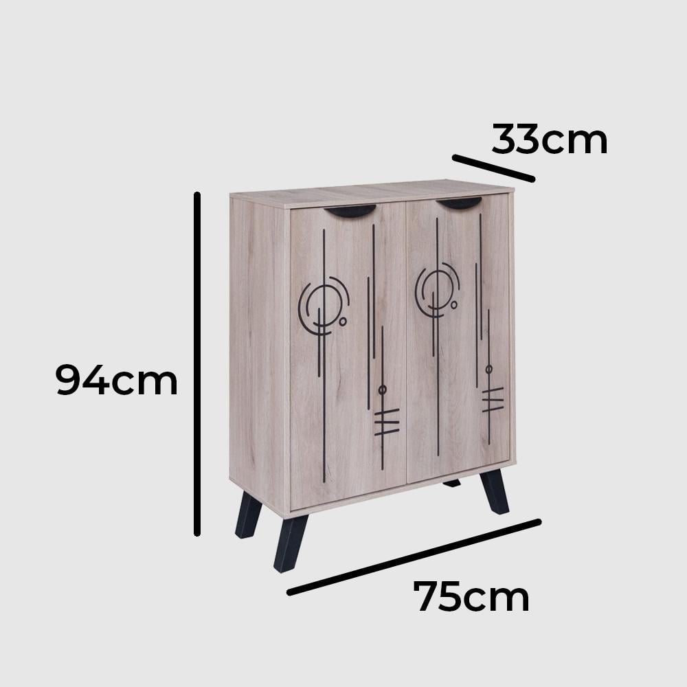 تجمع خزانة الأحذية هذه بين الجودة العالية والتصميم العصري، مصنوعة من خشب الجسيمات الماليزي المتين بلون بيج دافئ يضيف لمسة من الأناقة والرقي لأي مساحة. تضم 4 مستويات تخزين واسعة تسمح بترتيب الأحذية بكل سهولة وتنظيم، مع بابين أنيقين يحفظان محتويات الخزانة بعناية. قاعدة متينة تضمن ثباتًا واستقرارًا دائمًا، مما يجعلها خيارًا مثاليًا للمداخل والممرات.
