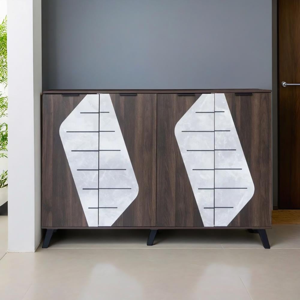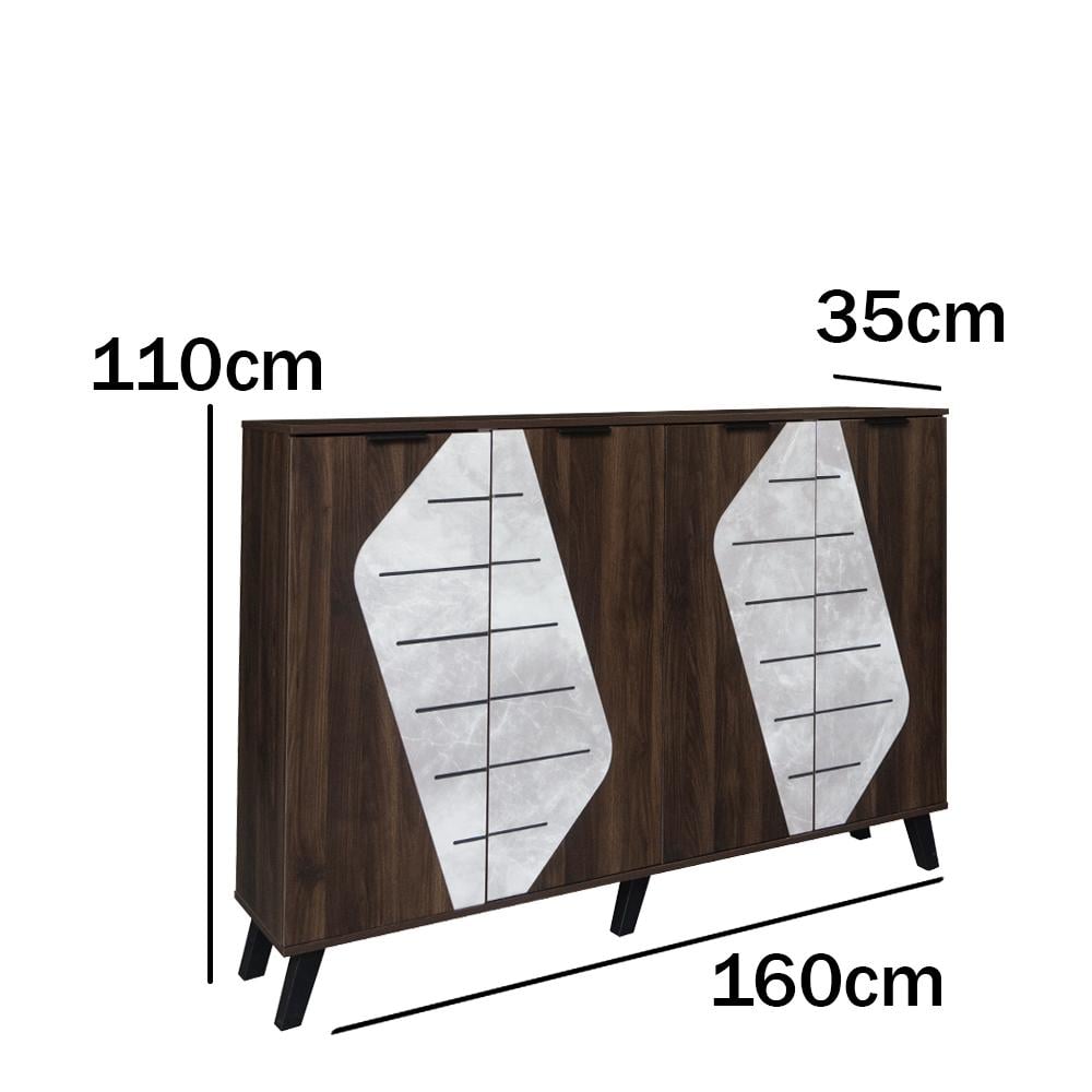 هذه الخزانة المصممة من خشب ماليزي عالي الجودة تأتي مع 2 أقسام و5 أرفف مقسمة لتخزين الأحذية بطرق عملية ومنظمة. مع 4 أبواب للحفاظ على الأحذية بعيدًا عن الغبار، توفر هذه الخزانة مساحة تخزين كبيرة في اللون البني الغامق والرّصاصي الفاخر، مما يجعلها إضافة مثالية لأي مدخل، غرفة نوم، أو غرفة معيشة.