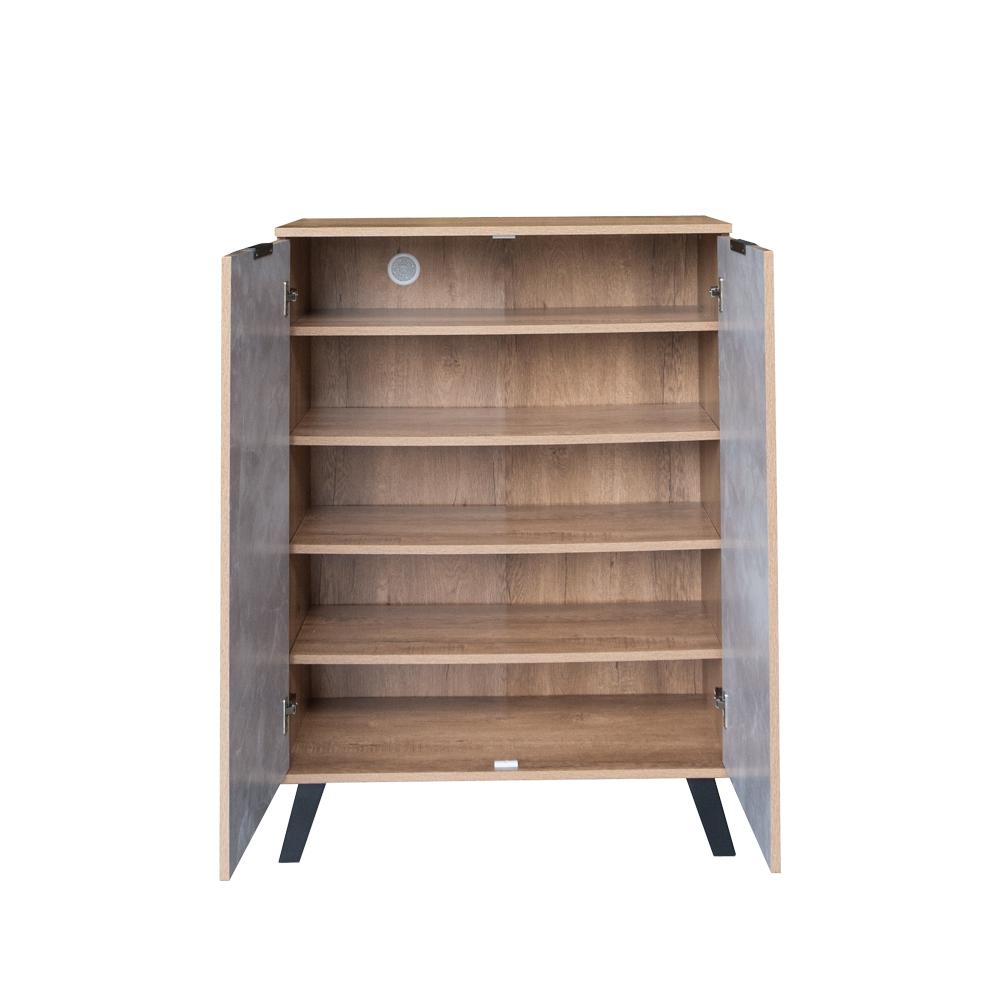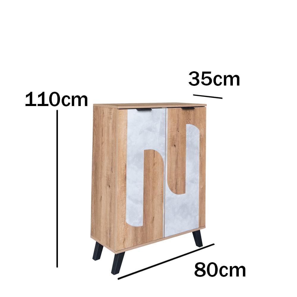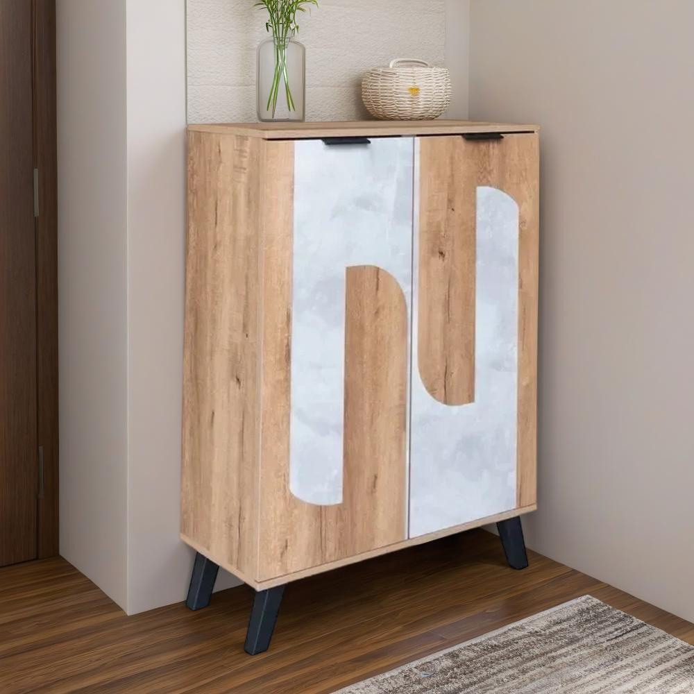 خزانة أحذية مصنوعة من خشب ماليزي عالي الجودة، تجمع بين اللونين الخشبي والرصاصي، توفر 5 مستويات تخزين واسعة لتنظيم الأحذية بطريقة أنيقة وفعّالة. تحتوي على بابين للحفاظ على الأحذية من الغبار والتلف، وتناسب بشكل مثالي المداخل والممرات. القاعدة الثابتة توفر استقرارًا ممتازًا، مما يجعلها إضافة رائعة لأي منزل.