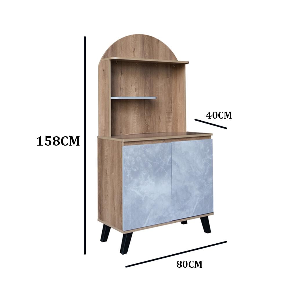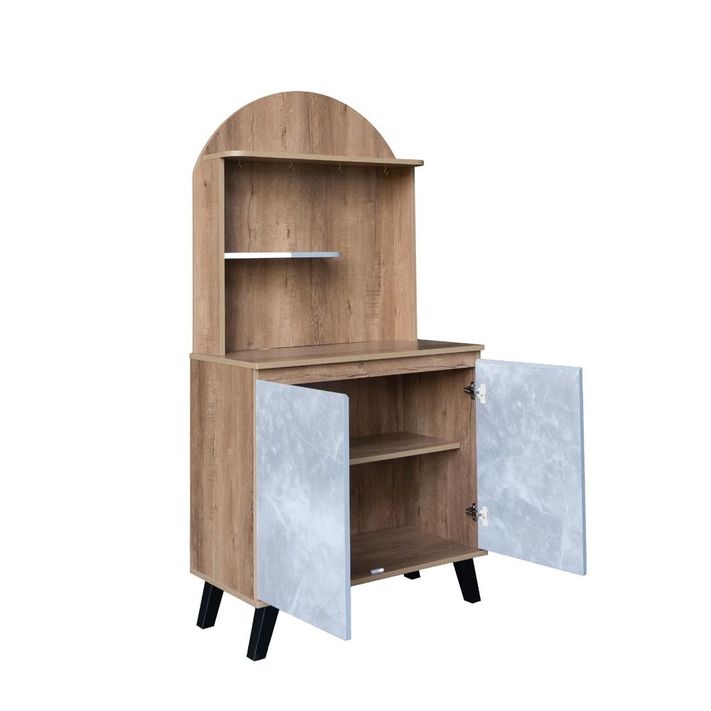 أضف لمسة أنيقة إلى ركن القهوة في منزلك مع هذا الدولاب العملي المصنوع من خشب ماليزي عالي الجودة. يأتي بلون خشبي مع رمادي ليمنحك مظهرًا متناغمًا يناسب مختلف أنماط الديكور، ويحتوي على دورين تخزين مغلقة مع رفوف مفتوحة لتنظيم الأكواب ومستلزمات القهوة بأفضل شكل.