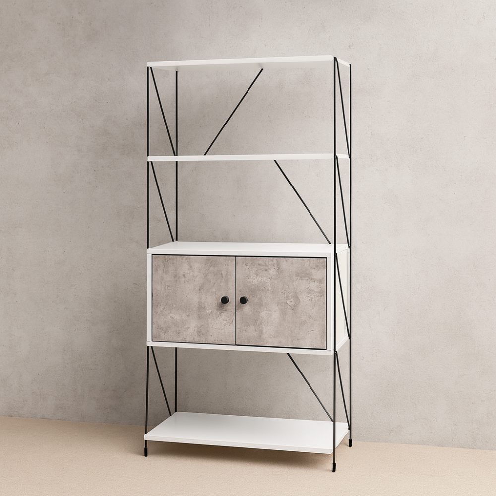 وحدة رفوف خشبية 4 ادوار للكتب مع خزانة تنظيم الأغراض المتنوعة , تتميز ارفف كتب خشب متين وبتصميم أنيق مثالي لعرض التحف والكتب والشموع بطريقة رائعة , رفوف تخزين بمساحة واسعة , وحدة ارفف خشب رائعة للمداخل والمكاتب وغرف المعيشة , سهلة التركيب , وحدات رفوف قوية وشديدة التحمل وتدوم طويلا , تساعدك على تنظيم المكان بالشكل الذي ترغب به لمنزلك .
