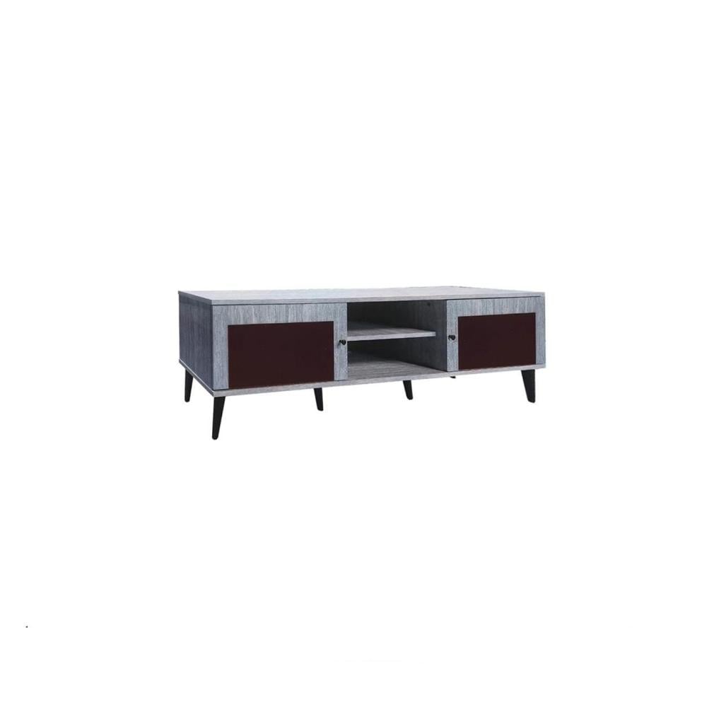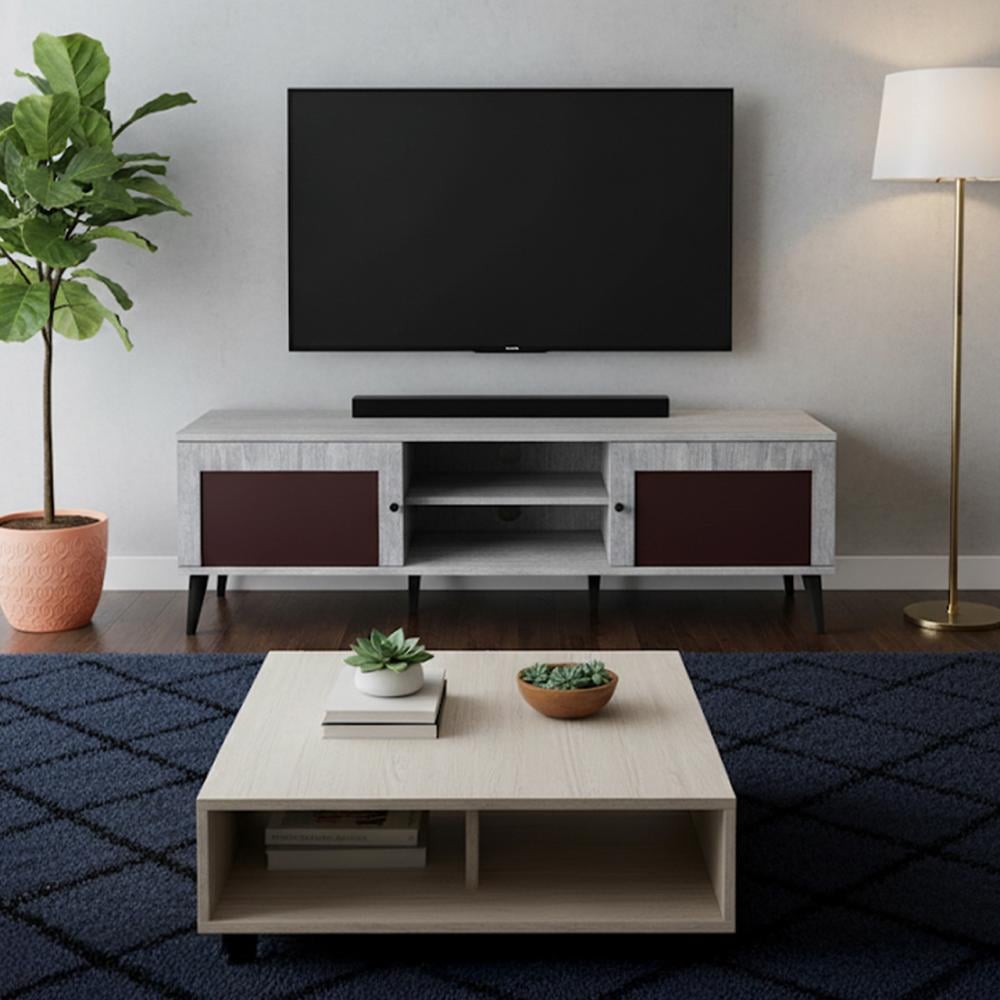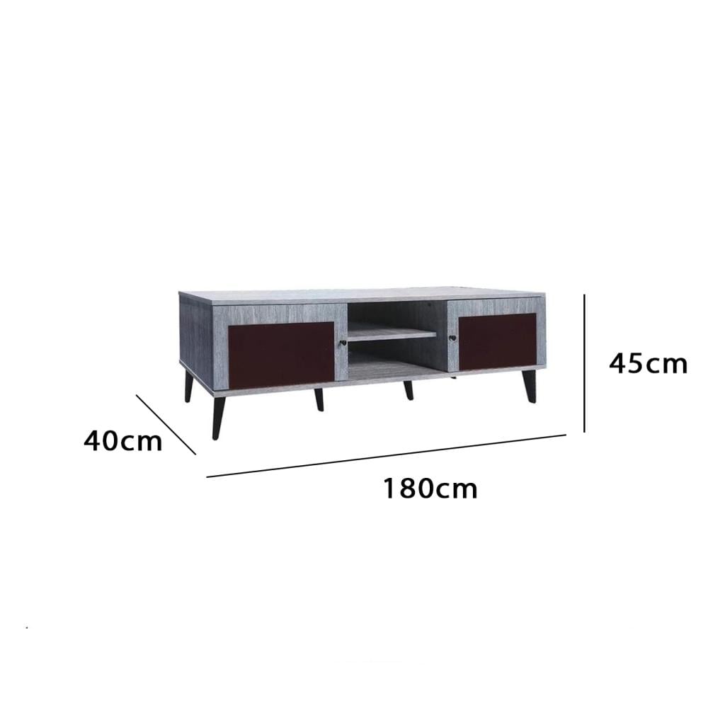 طاولة تلفزيون خشب ماليزي 180 سم مع 2 ادراج وارفف - رمادي وبني غامق