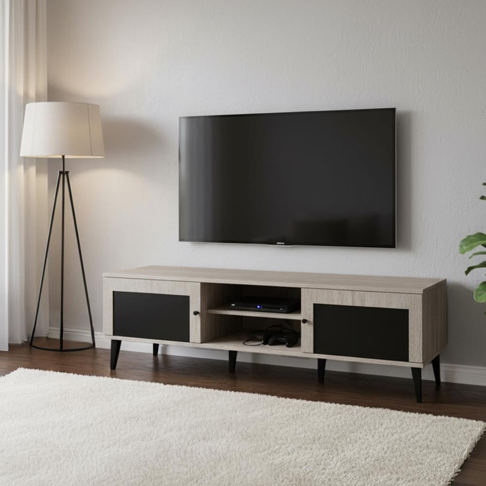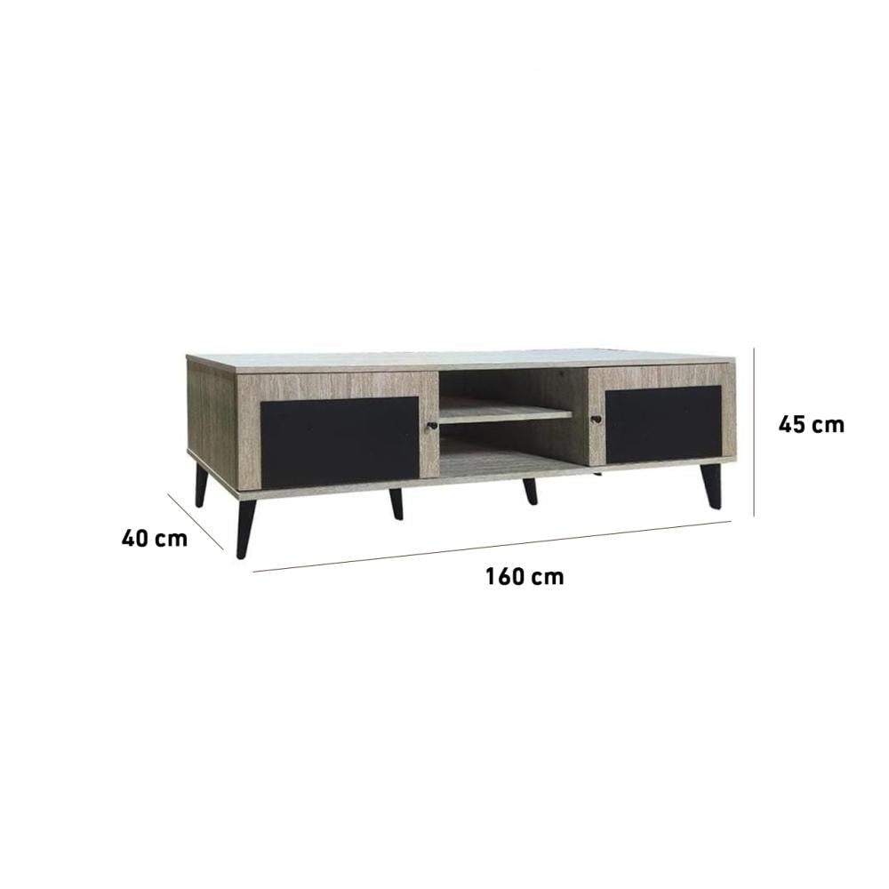 طاولة تلفزيون خشب ماليزي 160 سم مع 2 ادراج وارفف - بيج واسود