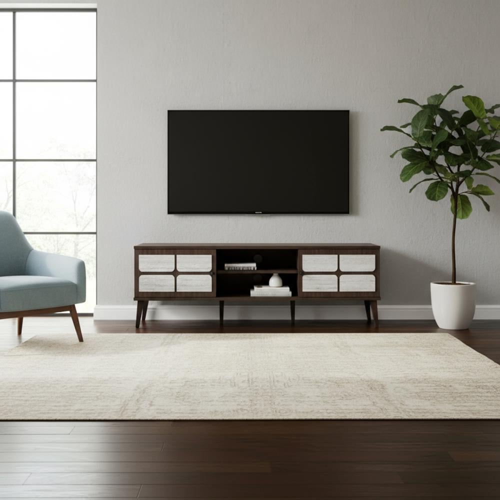 - تخزين متعدد الاستخدامات: درجين ورفوف مفتوحة لتنظيم الأجهزة والديكورات بشكل مرتب وعملي.