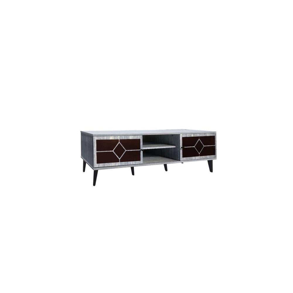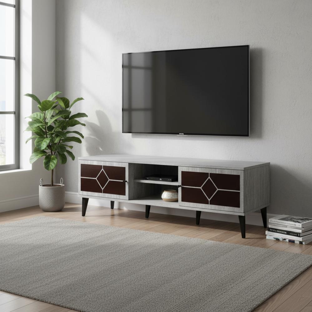 طاولة تلفزيون أنيقة 180 سم خشب ماليزي 2 ادراج وارفف - رمادي وبني غامق