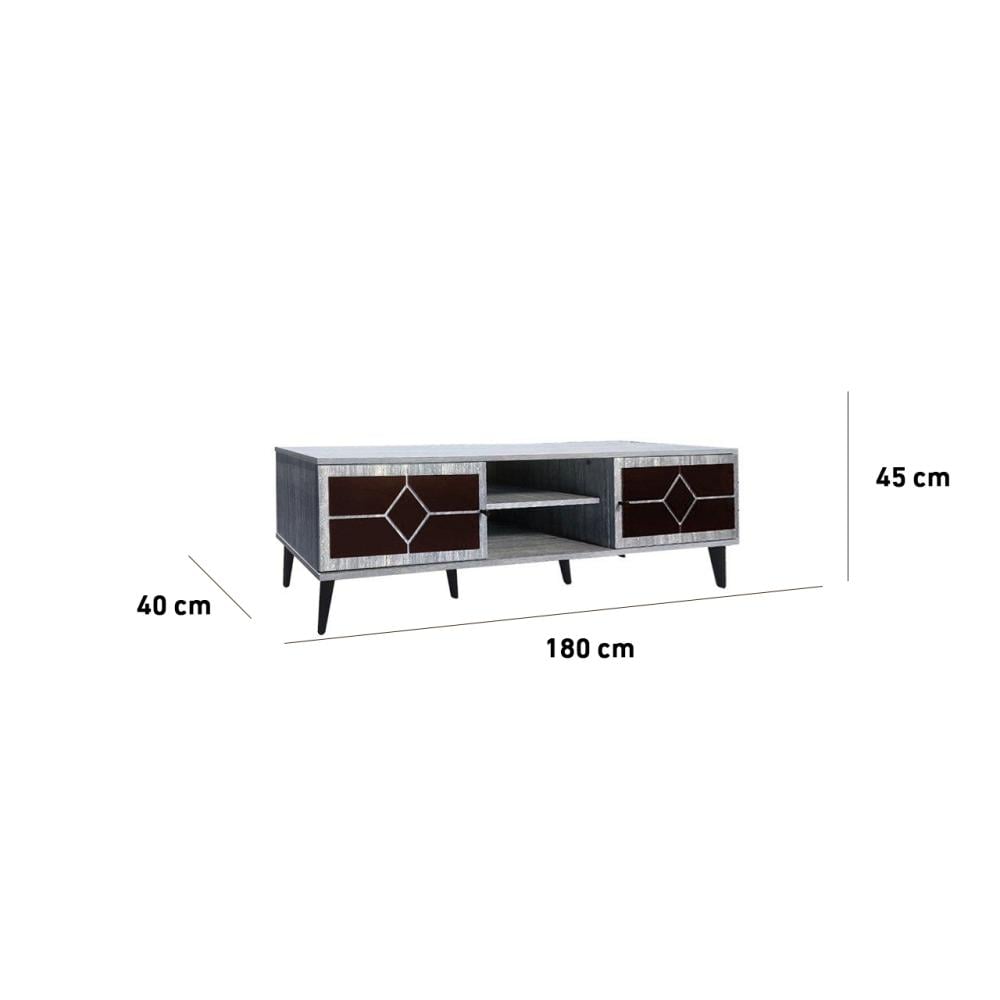 • تصميم عصري بطول 180 سم يمنحك مساحة مثالية لشاشاتك الكبيرة ويكمل ديكور غرفة المعيشة.