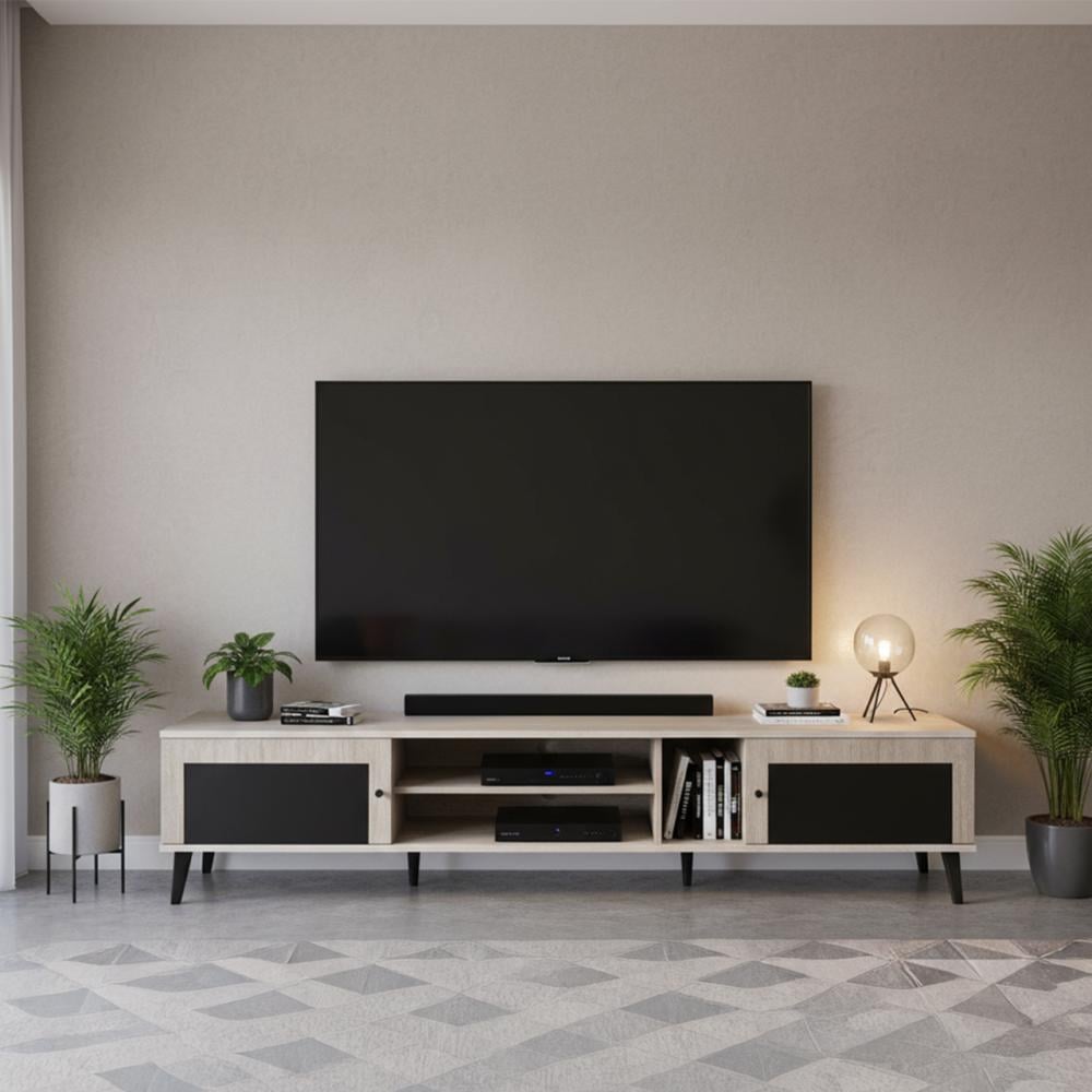 - الأبعاد: ( 200 × 40 × 45 ) سم، مساحة مناسبة لتركيب التلفاز وملحقاته.