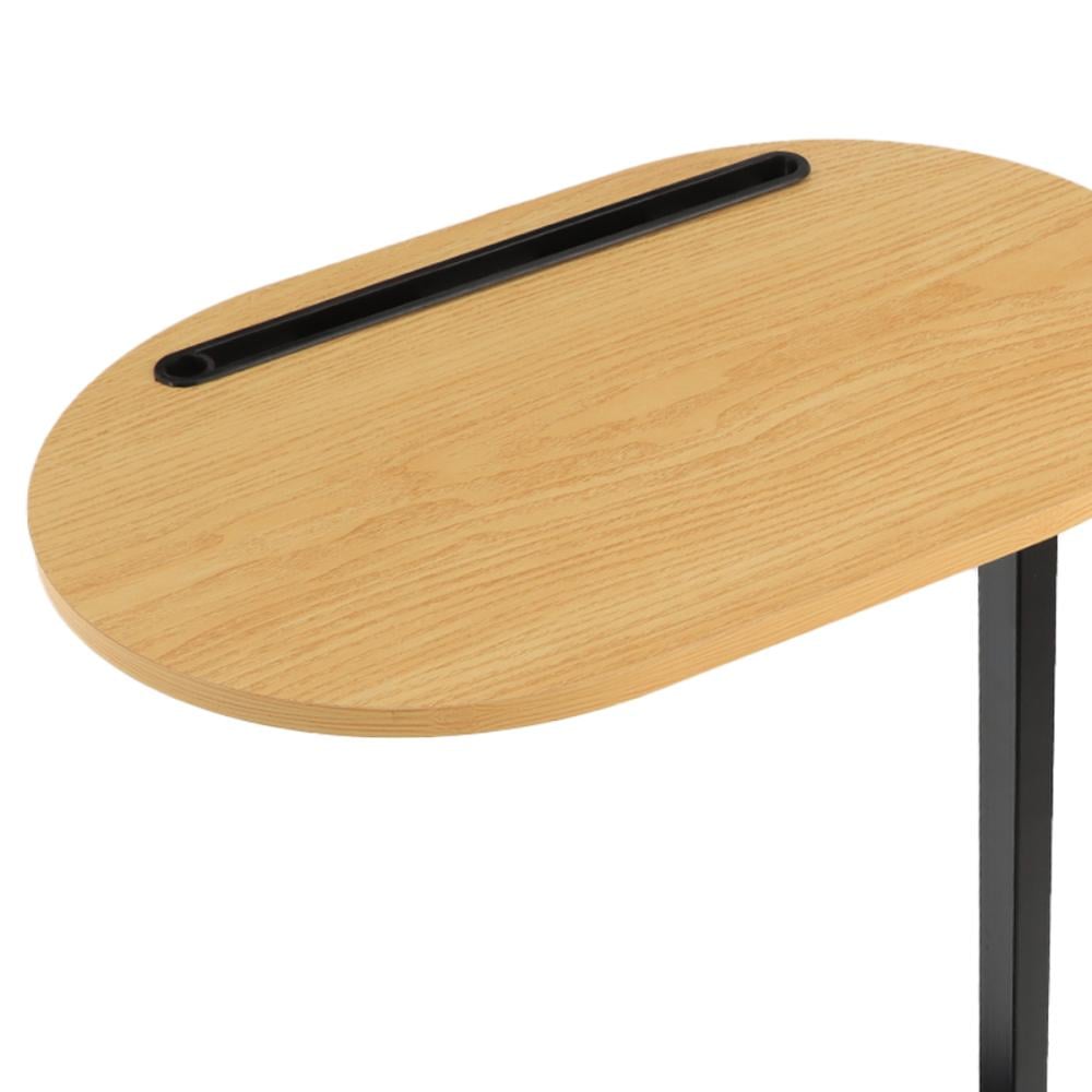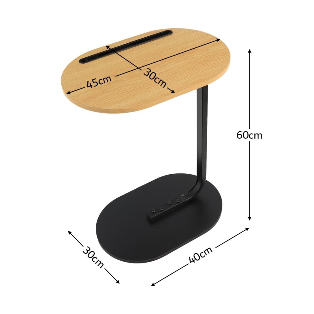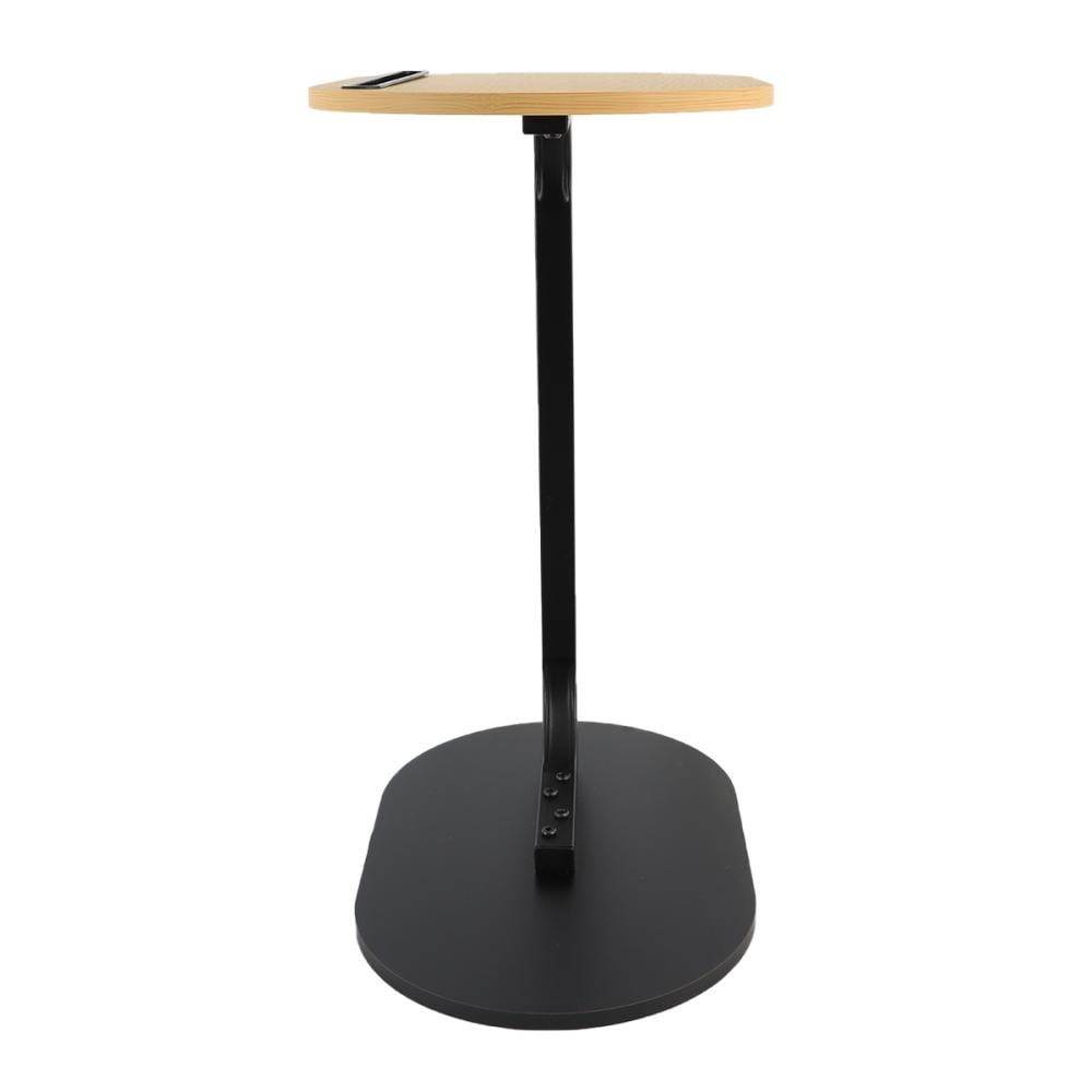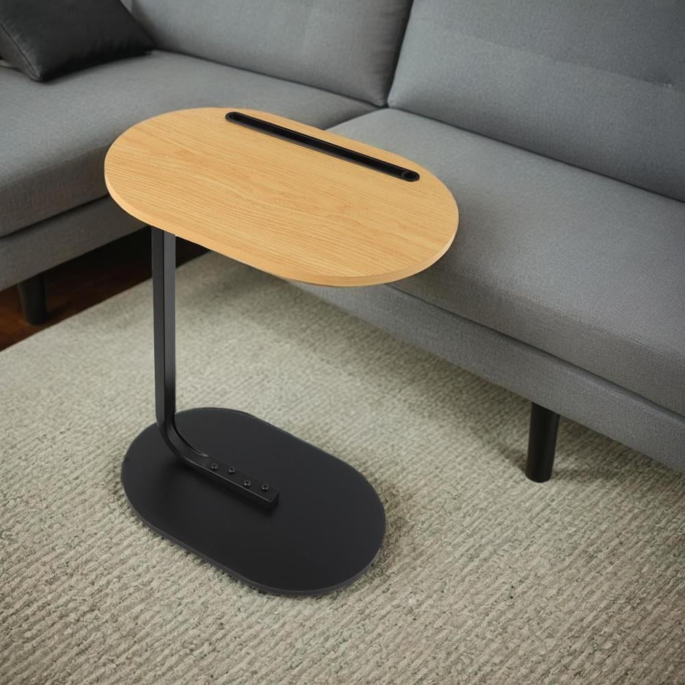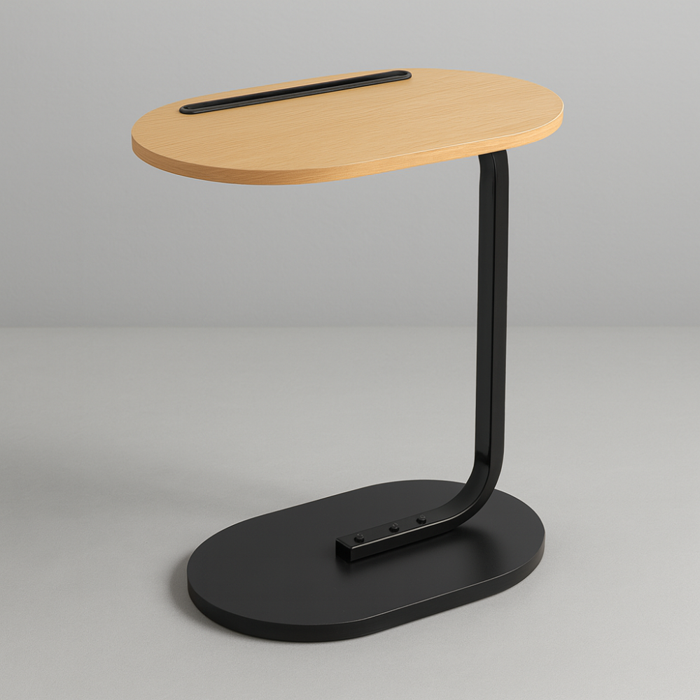 تصميم عصري يدمج بين الخشب والقاعدة المعدنية.