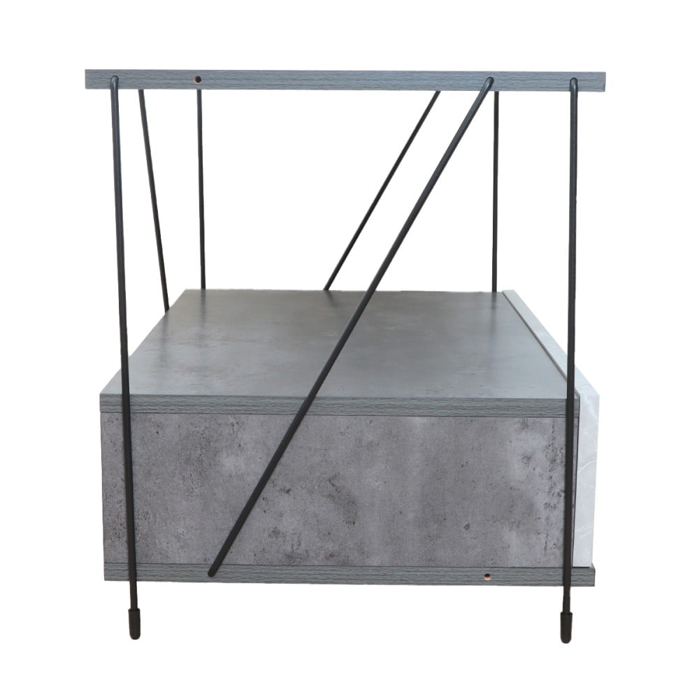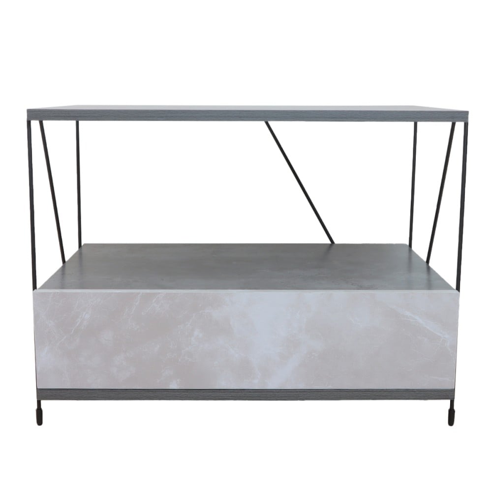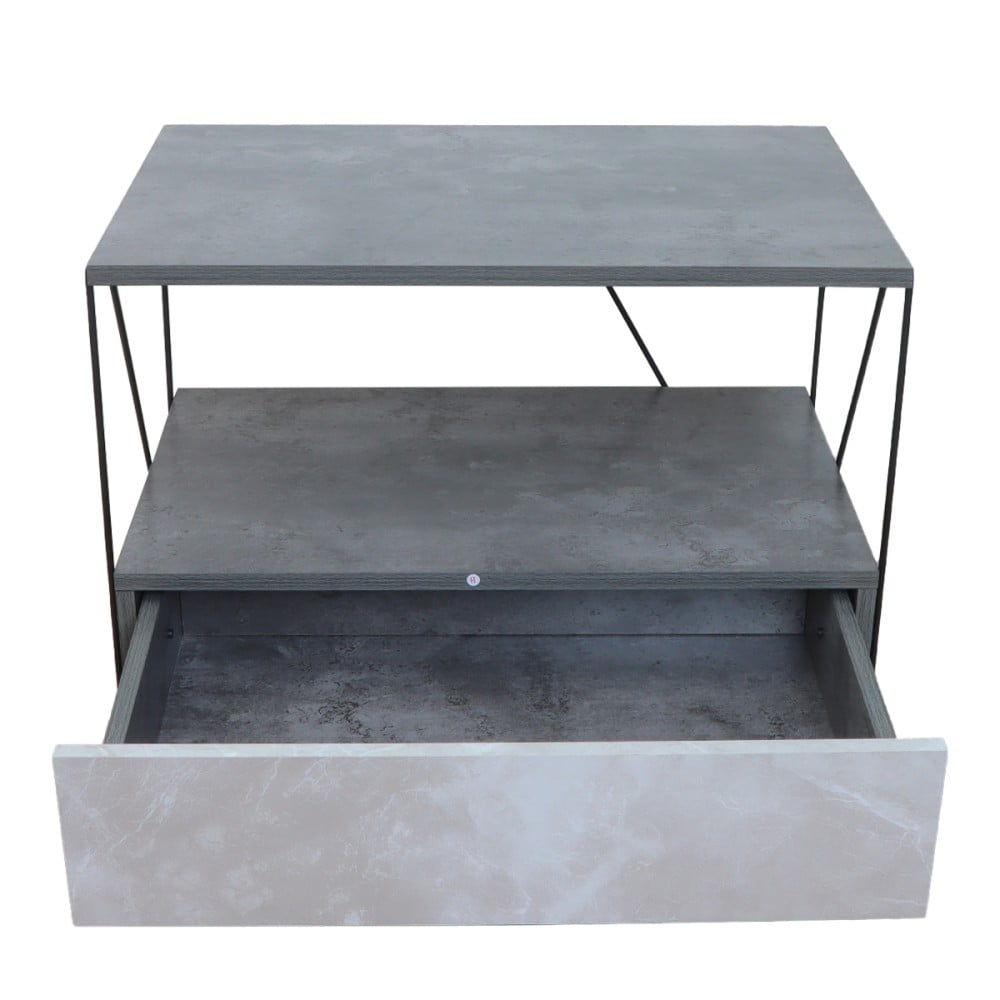 طاولة خشب جانبية بتصميم عصري وأنيق، تجمع بين الجمال والوظيفة، مع 2 أرفف ودرج لتخزين وتنظيم أغراضك. مصنوعة من الخشب الماليزي عالي الجودة مع قاعدة متينة وثابتة باللون الرمادي الرخامي. مثالية لغرف المعيشة وغرف النوم.
