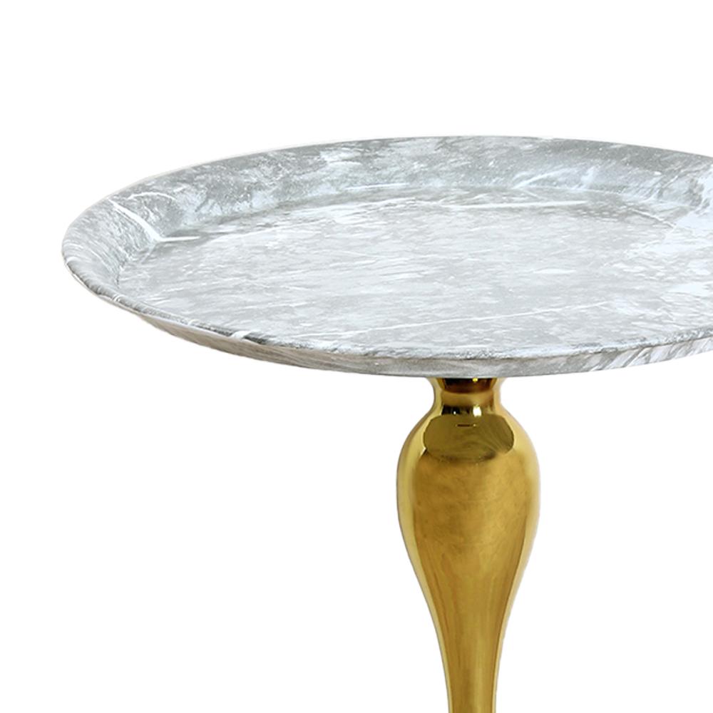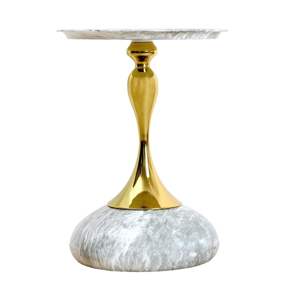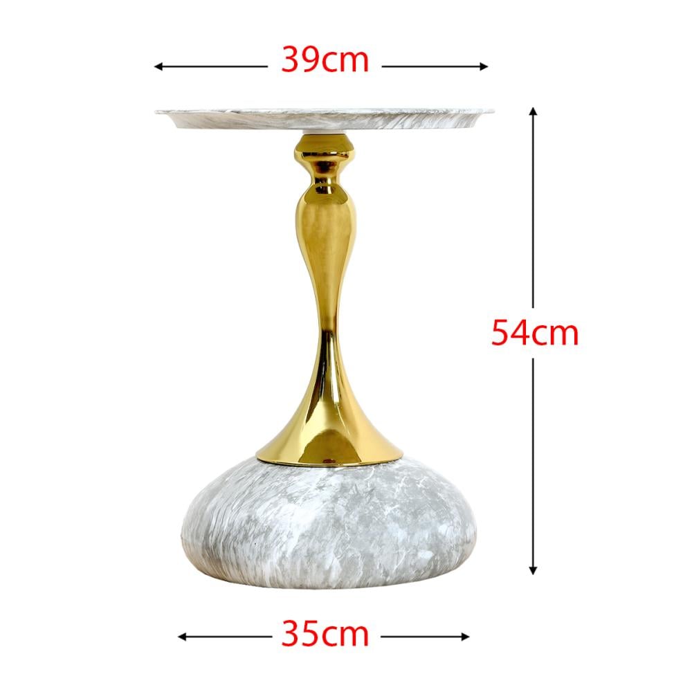 طاوله خدمه أنيقة من الاستيل بتصميم دائري - رمادي رخامي وذهبي