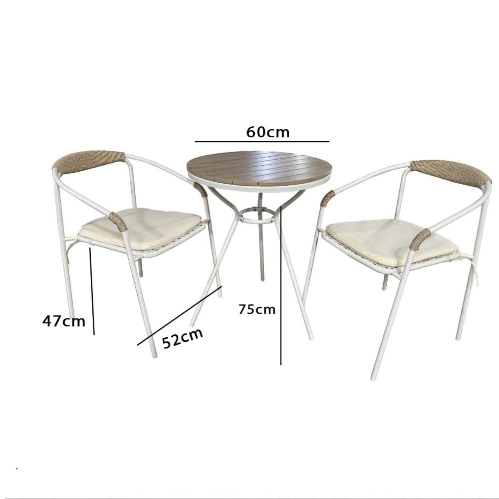 - عدد القطع: طاولة دائرية واحدة + 2 كراسي جلوس مريحة.