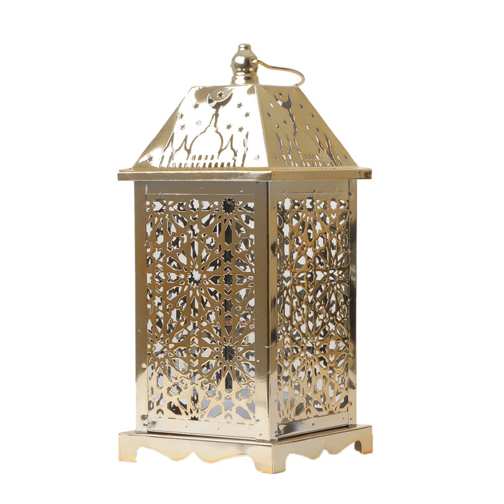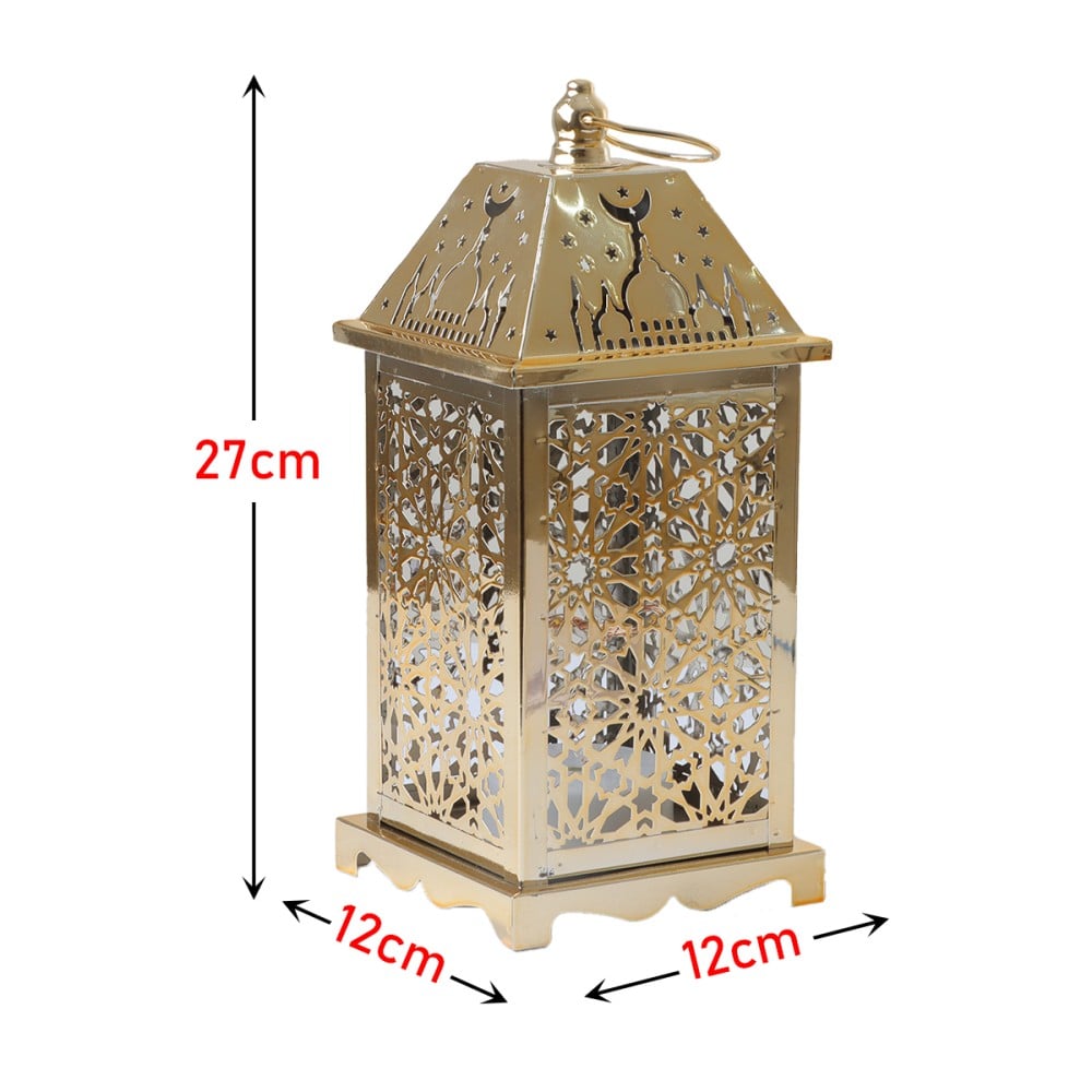 فانوس رمضان من الإستيل تصميم مربع الشكل باللون الذهبي :