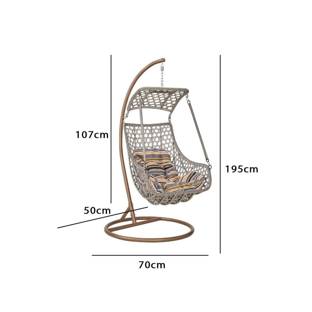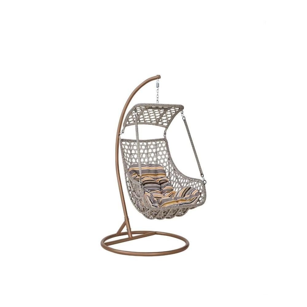 كرسي مرجيحة راتان ومعدن للمساحات الخارجية - لون رمادي