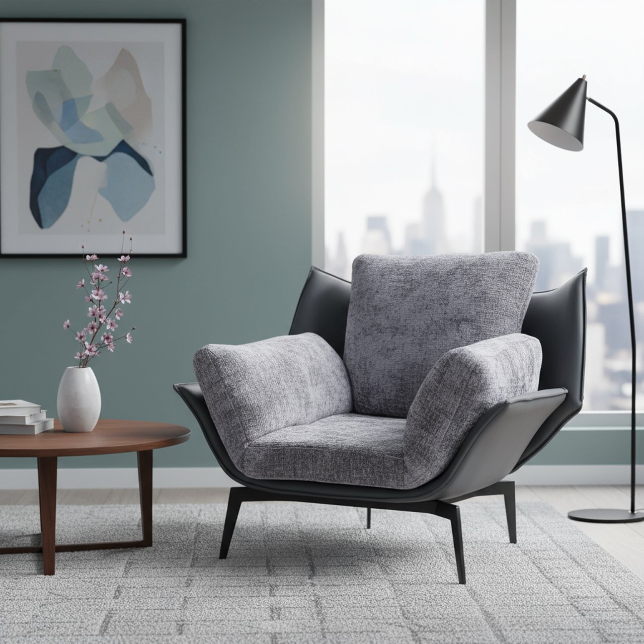 كرسي كنب مفرد قماش بقاعدة جلد - رمادي