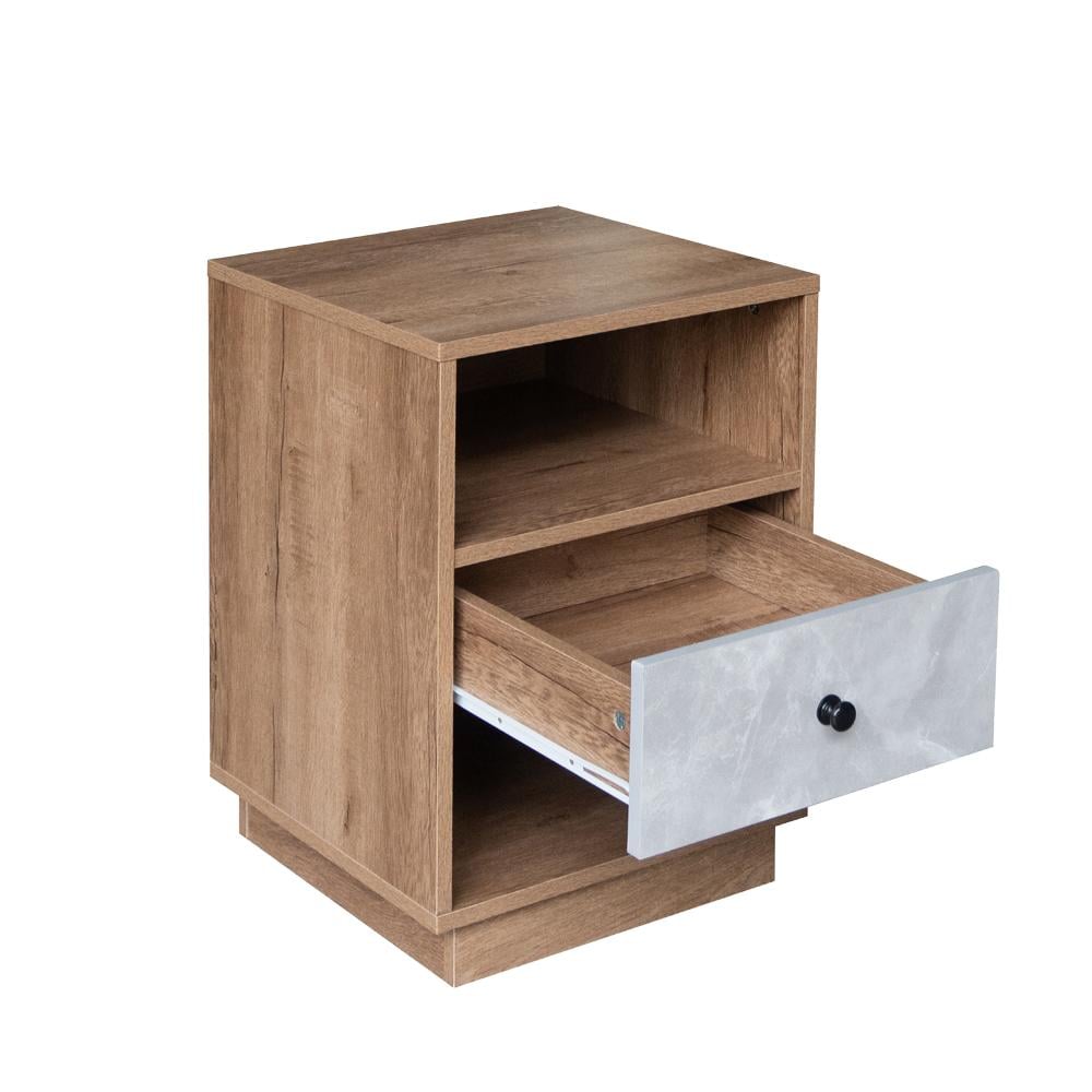 كومودينو درج ورفين - خشبي ورمادي