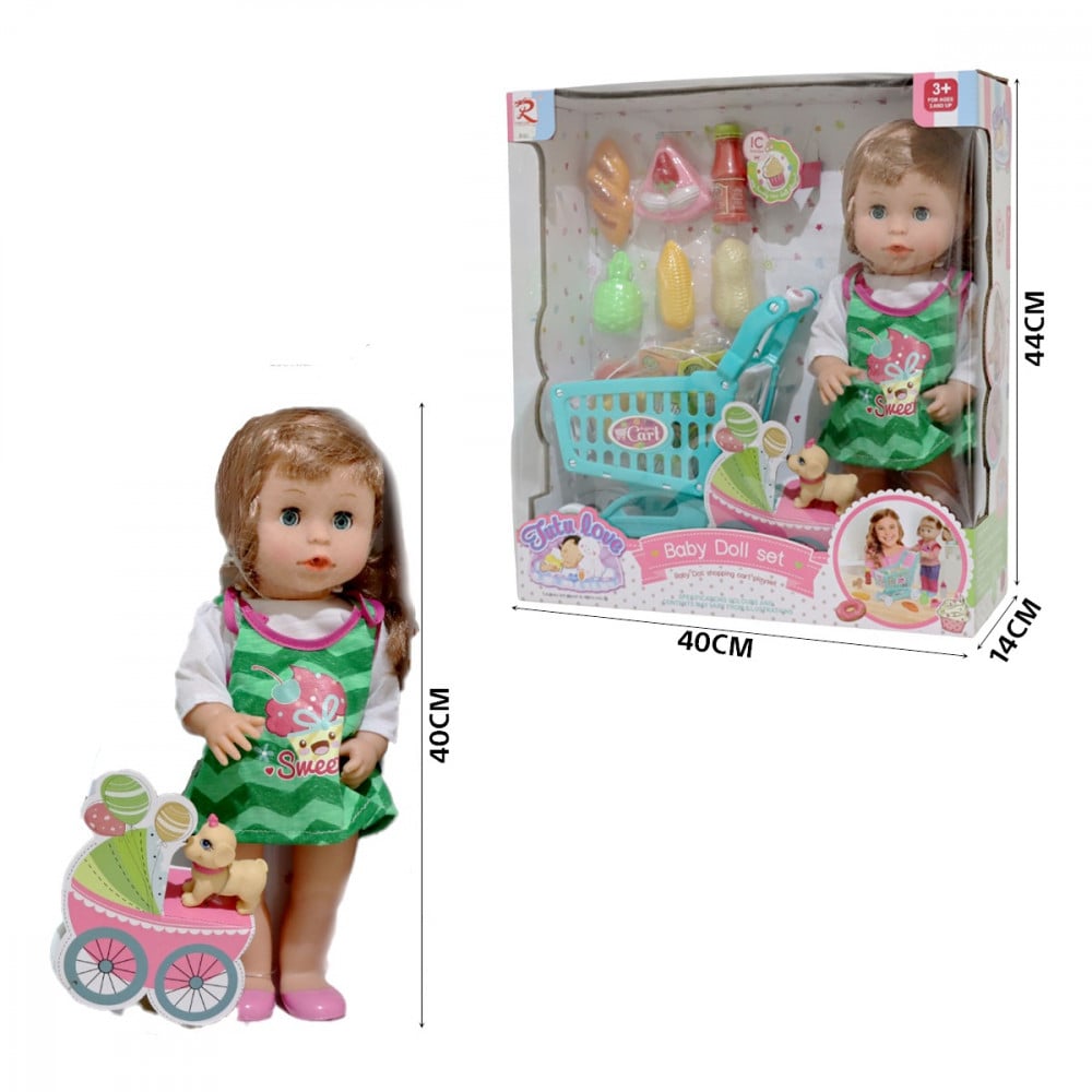 لعبة عروسة مع عربة تسوق سوبر ماركت :