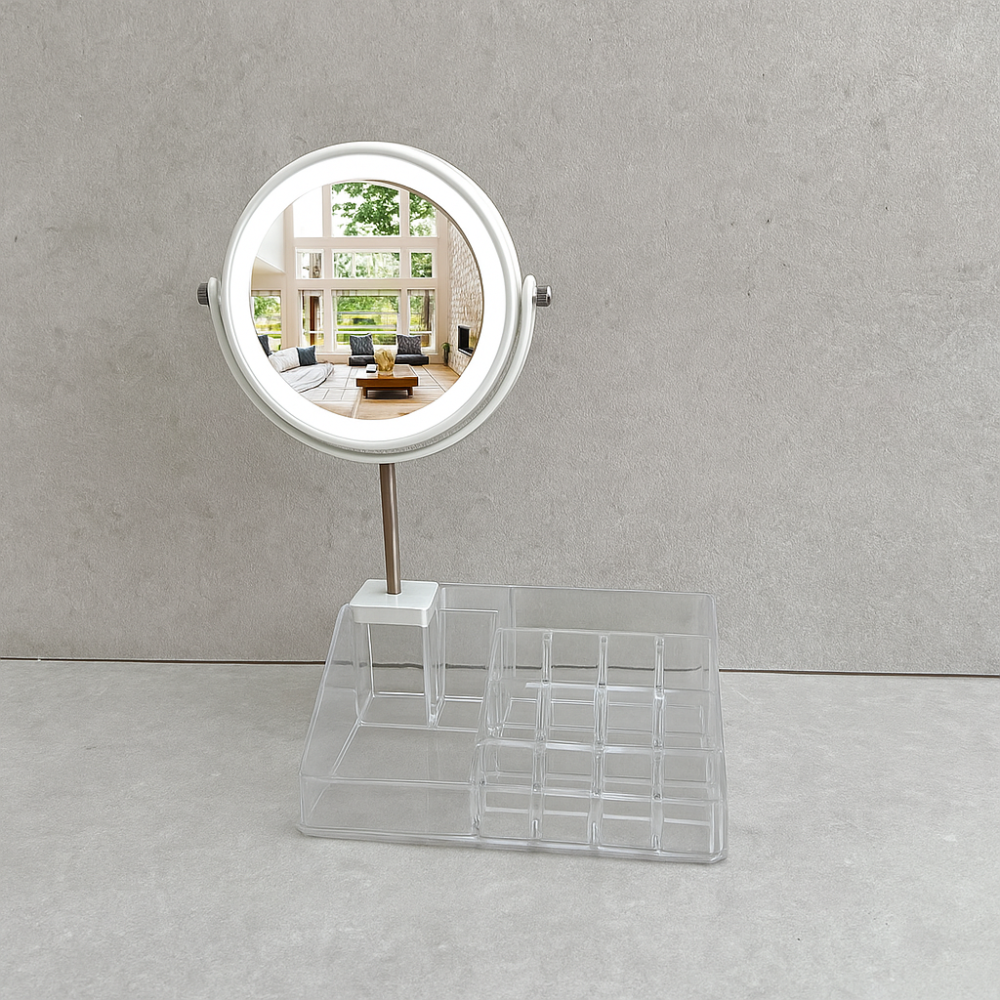 مرايا مكياج دائرية مع إضاءة ليد وستاند لتنظيم وترتيب أدوات الزينة والمكياج , مرآة دائرية محمولة مثالية لوضع المكياج اليومي والعناية بالبشرة وتسريح الشعر بكل سهولة وإرتياحية , مرايا مكياج بدقة ووضوح عالي وحجم مناسب , مرايا مضيئة مناسبة فوق الطاولة أو على التسريحة بشكل أنيق يضيف الروعة والجمال لطاولتك , مرآة تسريحة من المقتنيات الرائعة للعناية والجمال .
