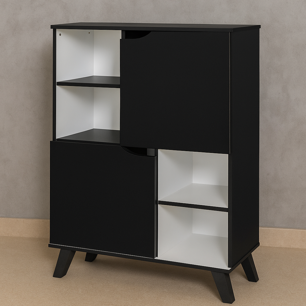 - وحدة أدراج مغلقة ببابين مع ادراج خشبية رفوف مفتوحة