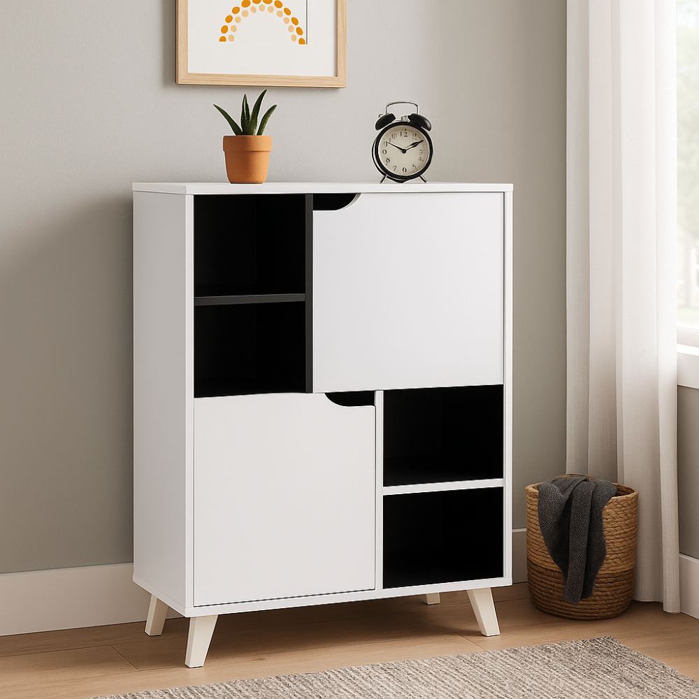 وحدة أدراج من الخشب الماليزي بابين باللون الأبيض و الأسود :