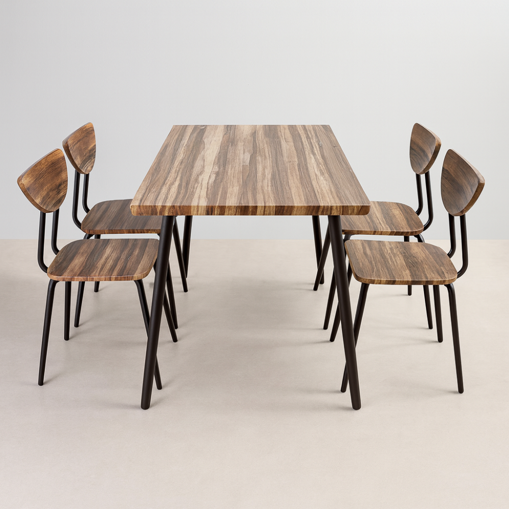 طاولة طعام خشبي بتصميم أنيق وعملي مع 4 كراسي , مصنوعة من خشب عالي الجودة ,خامات قوية وشديدة التحمل , سهلة التنظيف , يعتبر من قطع الديكور الجميلة والمناسبة للمنزل .